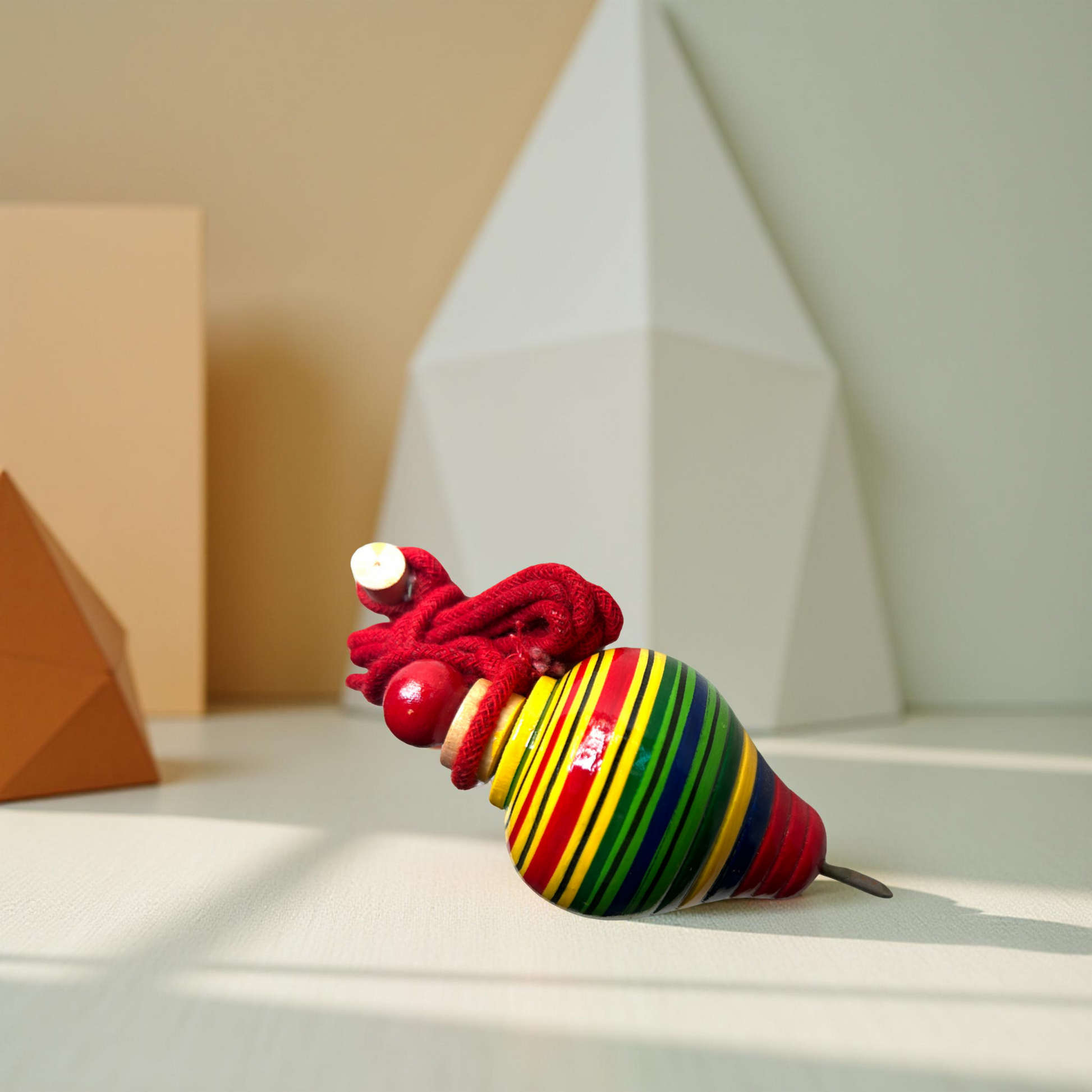 Motion and balance are the keys to the enchantment of its spin. The Bambaram keeps its upright posture while spinning on its sharp bottom tip when you give it a good whirl.