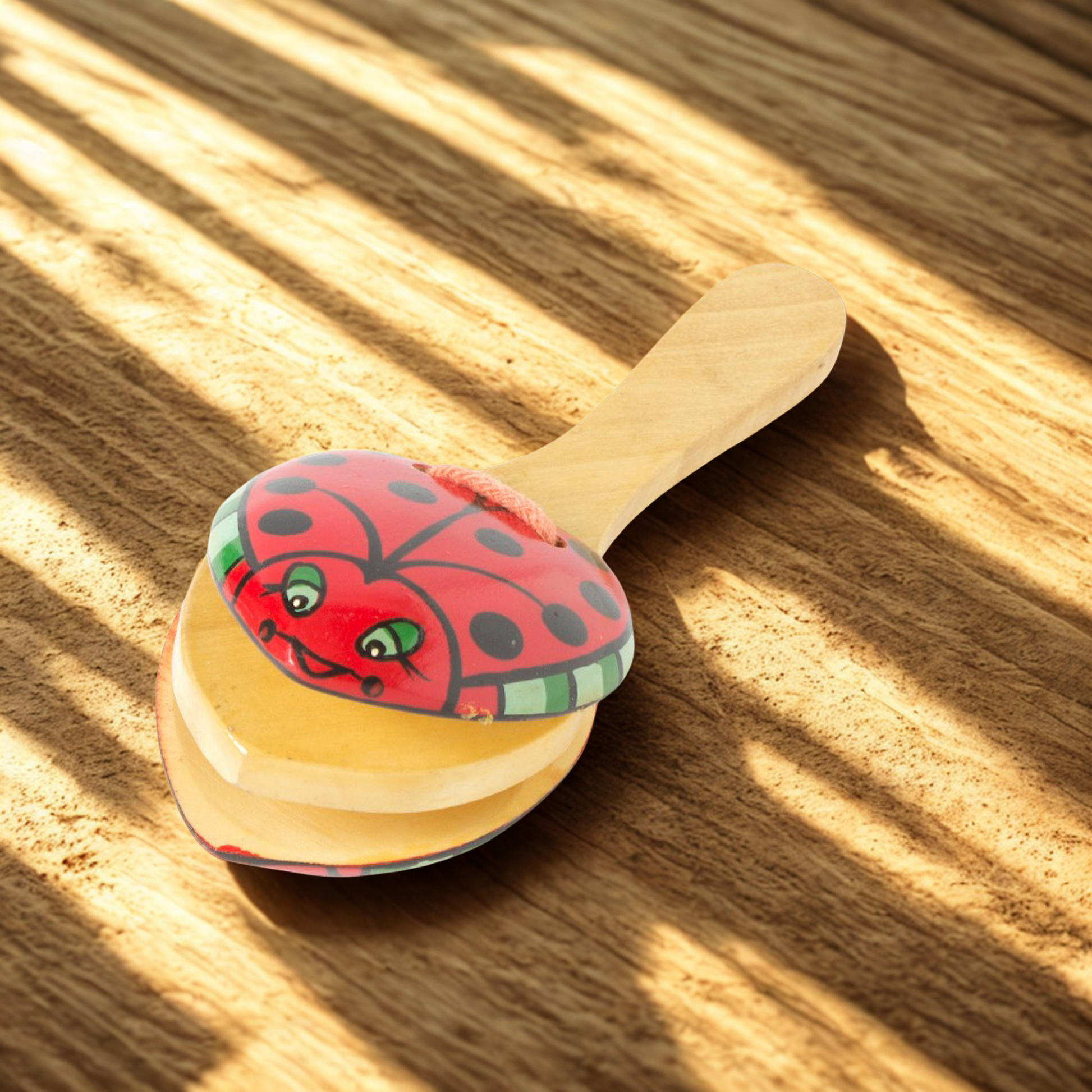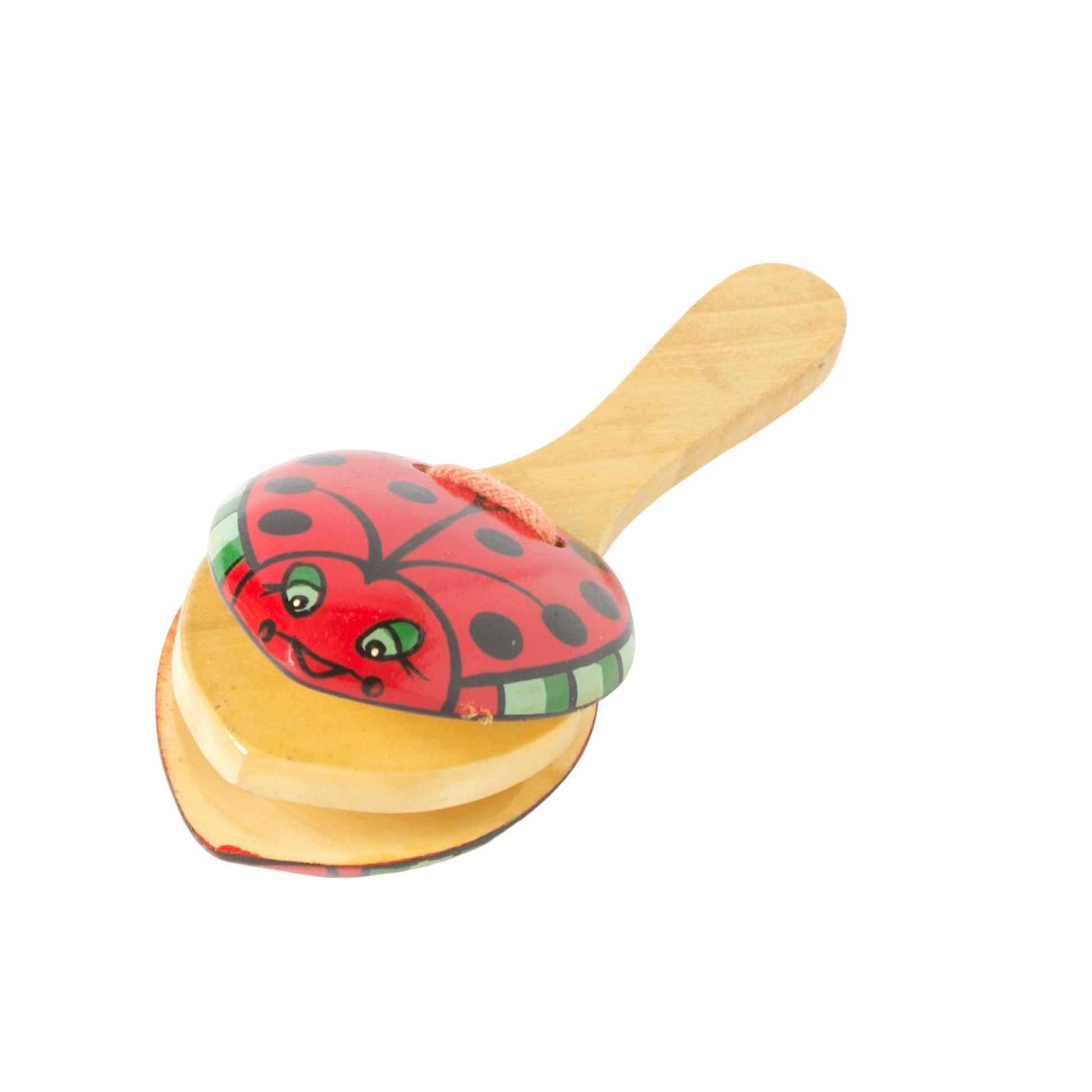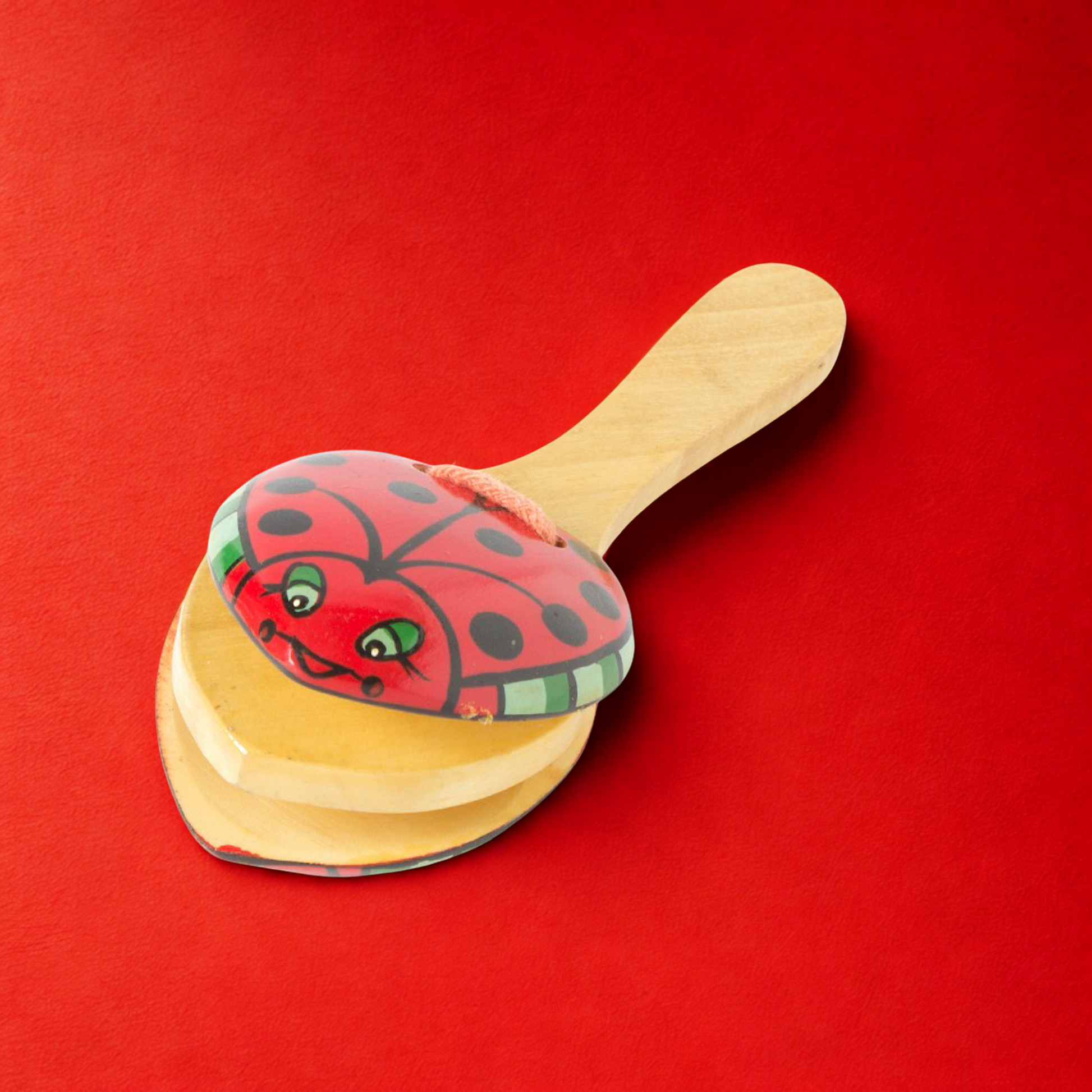 Castanet is a percussion instrument which is a pair of clappers tied together on either side of a stick by a string. To play you would hold the stick firmly with one hand and then lightly beat it on the open palm of the other hand.