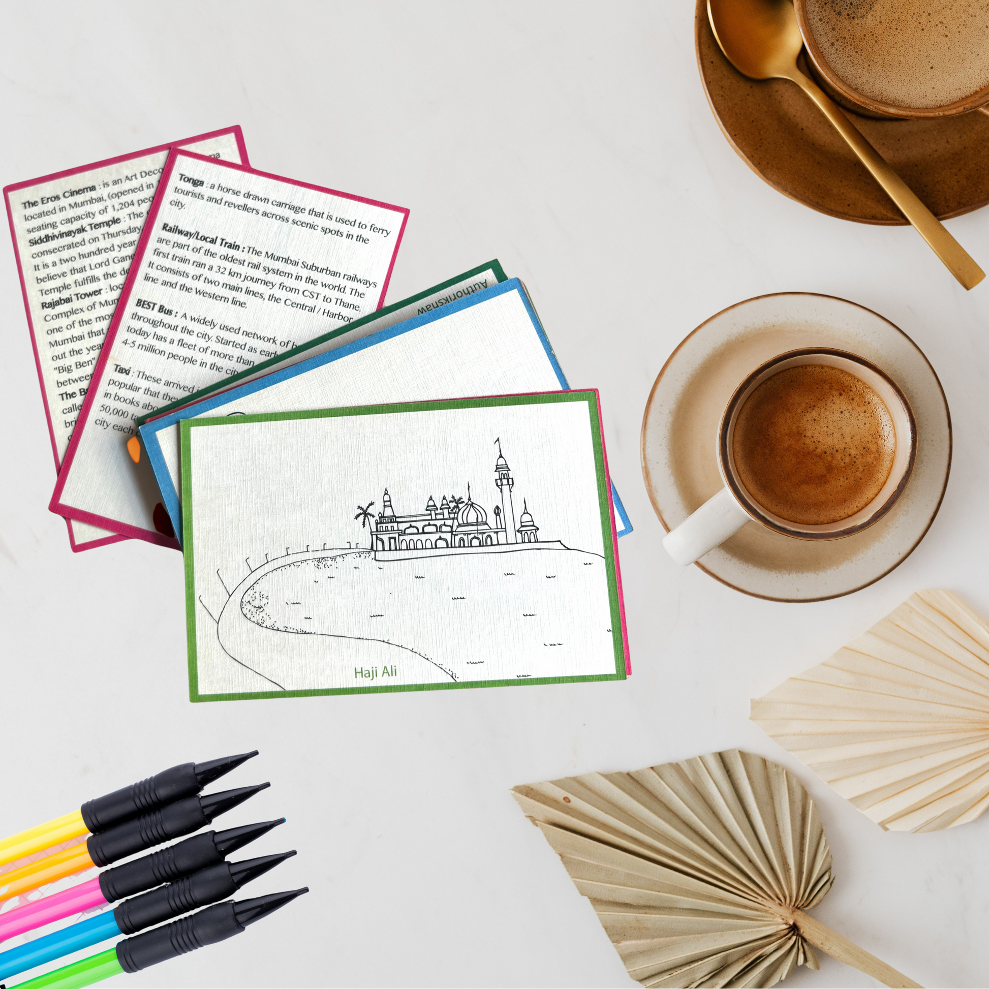 MUMBAI POSTCARDS 18 Iconic Coloring Postcards set